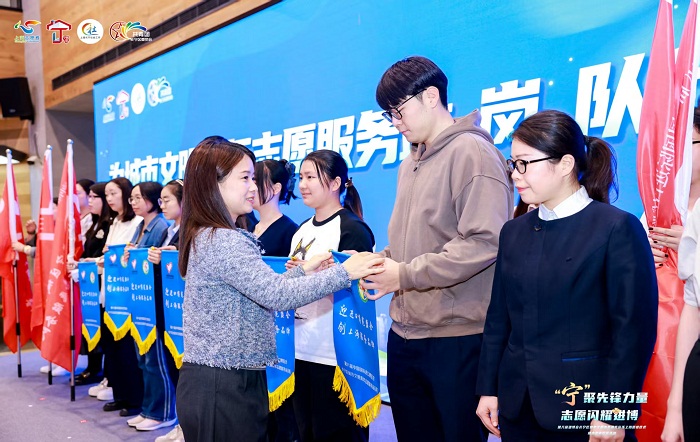 二是參與誓師動員,築牢服務保障先鋒力量。區局參與第八屆進博會長寧區城市文明志願服務隊伍上崗誓師儀式,以昂揚姿態整裝待發。區局“青檸檬”城市文明青年志願服務站作為進博服務陣地,青年幹部在儀式現場接受授旗並莊嚴宣誓,展現了長寧稅務青年投身進博一線服務的決心與風采。“青檸檬”志願服務站將在進博會期間開展稅收政策宣傳活動,著力營造國際化、便利化的稅收營商環境。