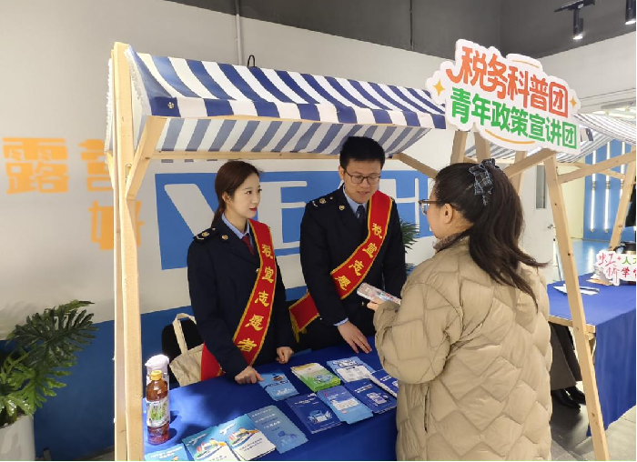 商圈設點送政策,答疑解惑惠民生。區局青年幹部在百聯西郊商圈設立便民服務點,面向商戶及往來市民開展政策諮詢服務。現場答疑,精準解惑。志願者們圍繞個人所得稅匯算清繳、社保費繳納、小微企業優惠政策等熱點問題,發放通俗易懂的宣傳折頁,耐心回應群眾關切。手把手教,心貼心幫。針對部分市民不熟悉個稅App操作的情況,志願者們主動上前,細緻演示填報流程,協助完成申報。一抹抹“稅務藍”輝映“志願紅”,青年們以專業和熱忱,在商街人流中,在城市煙火處,寫下新時代雷鋒精神的溫暖注腳。