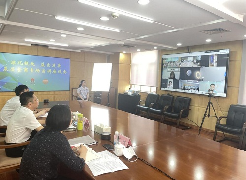 宣講會針對企業重點關注的稅務、資金扶持等方面助企紓困政策進行了宣傳輔導工作。區局介紹了近期全電票試點推廣、“組合式”稅費支援政策落實等重點工作;區投促辦介紹落實助企紓困政策和復工復産及疫情防控相關情況;區市場局介紹智慧財産權託管相關政策。