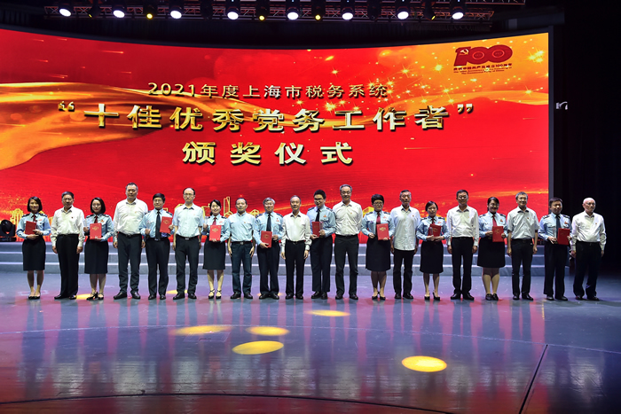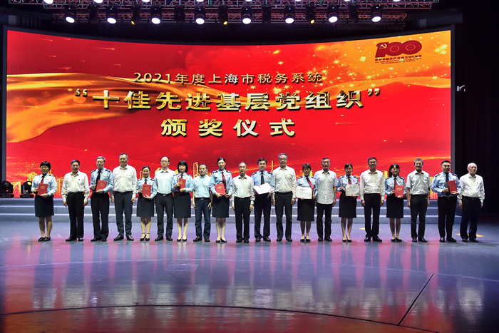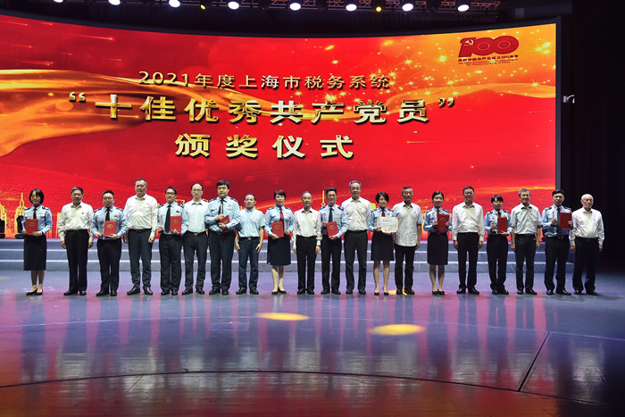 活動在上海稅務建黨百年專題片《稅徽向黨徽獻禮》中拉開序幕。市局黨委書記、局長馬正文為來到現場的兩位黨齡超過50年的離退休老黨員代表頒發“光榮在黨50年”紀念章。市局全體局領導為獲得上海市稅務系統2021年“十佳先進基層黨組織”“十佳優秀共産黨員”和“十佳優秀黨務幹部”頒獎。全國先進工作者、上海市優秀共産黨員毛琦敏同志領誓,榮獲上海市、市級機關和市局機關“兩優一先”榮譽稱號的先進集體和個人集中宣誓,現場全體黨員幹部一同重溫入黨誓詞。上海市稅務系統2021年“兩優一先”獲獎代表在現場用詩朗誦《七月的陽光》,抒發對黨的深情告白。