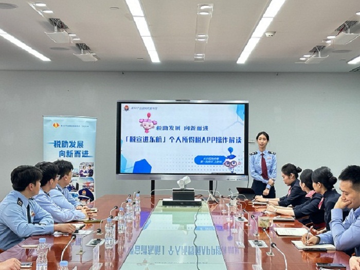 此外,區局聯合中國東方航空股份有限公司客艙服務部,以第33個全國稅收宣傳月為契機,開展個人所得稅普法微課堂主題活動。針對空乘人員關注的熱點涉稅政策進行詳細解讀,並就個稅APP中專項附加扣除填報等具體操作進行現場一對一輔導,以點及面,以少帶多,推動個稅優惠政策應享盡享。