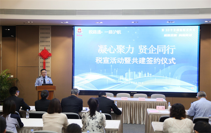 為更好服務高水準對外開放,以服務跨境投資全生命週期為中心,深化“稅路通”服務品牌,4月28日下午,奉賢區稅務局聯合奉賢海關開展“凝心聚力 賢企同行”稅宣活動暨共建簽約儀式活動。奉賢區稅務局黨委委員、總經濟師王超、奉賢海關黨委委員、副關長施威出席活動。