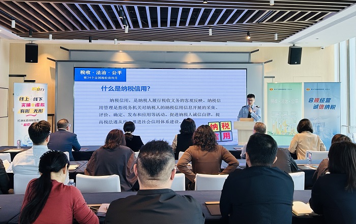 近日,普陀區稅務局緊緊圍繞第34個全國稅收宣傳月活動主題“稅收·法治·公平”,選取普陀實體民營經濟代表月星環球港,開展“稅動力·補給站”掛牌儀式暨“稅潤蘇河促民營,向‘實’而行固根基”專題稅收宣傳活動,積極引導各類經營主體遵法、學法、守法、用法,增強合規經營和風險防範意識,為營造良好的營商環境貢獻“稅力量”。