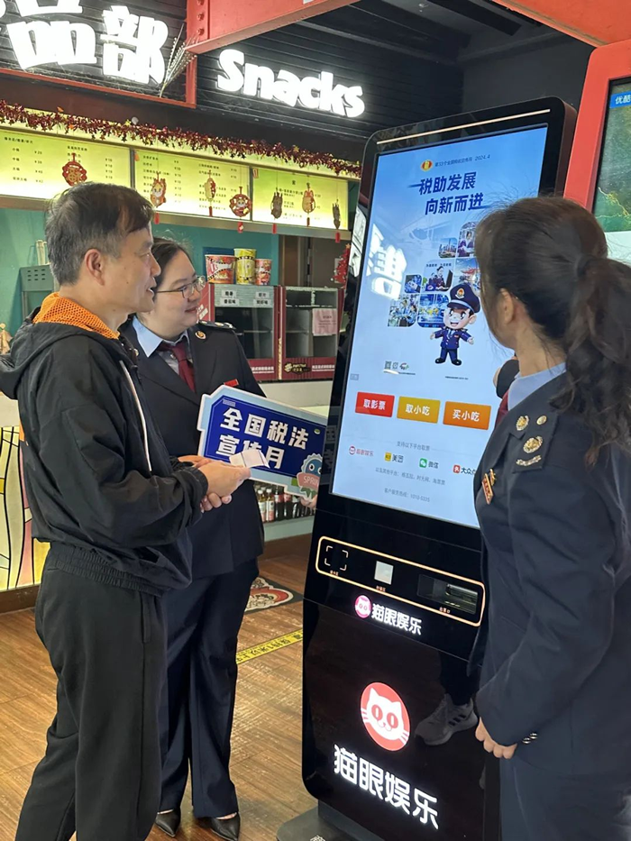 第一稽查局在本市多家影院的165台取票機上投放“稅助發展,向新而進”的稅宣海報,為第33個全國稅收宣傳月“屏”添色彩,在廣大觀影群眾享受視聽盛宴的同時讓稅收宣傳深入人心。