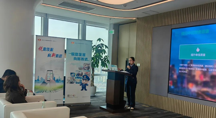 虹口區稅務局、第四稽查局緊扣“稅助發展 向新而進”的宣傳主題,走進北外灘來福士廣場開展“稅宣進樓宇”稅費宣講活動,面向樓宇內重點企業講解企業所得稅匯算清繳政策,並提供納稅諮詢服務,幫助企業盡享政策紅利和服務便利。