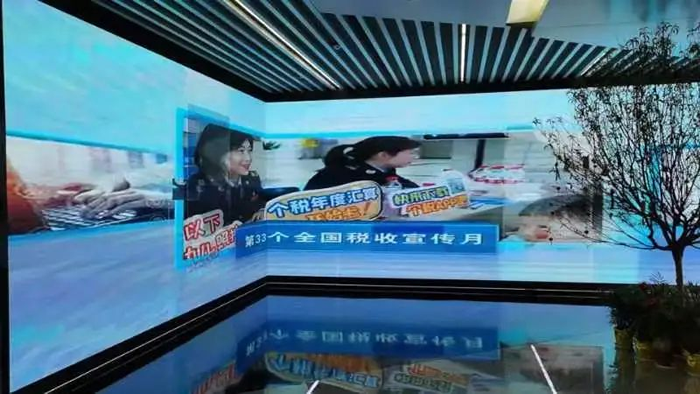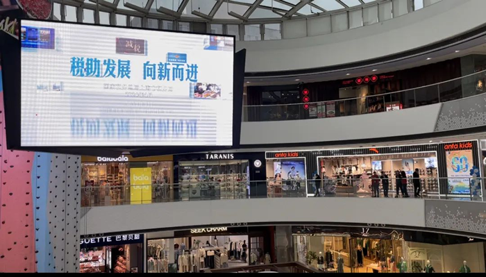浦東新區稅務局充分利用線下商圈人口流動大的特點,在周浦萬達廣場、世紀百聯、寶龍廣場等商圈,通過大屏滾動播放稅宣海報、視頻,宣傳“徵管改革”“稅收共治”等當前稅務部門重點工作,點亮了“稅助發展 向新而進”的主題,讓稅宣“好聲音”傳進千萬家。