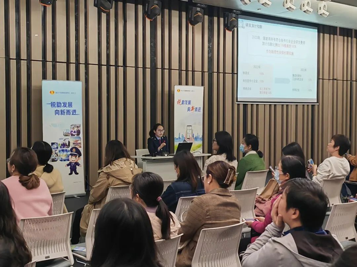 閔行區稅務局走進浦江臨港高科技園區,面向200余戶創新研髮型企業開展研發費用加計扣除政策專題宣講培訓,用稅務力量助推新質生産力培育發展。