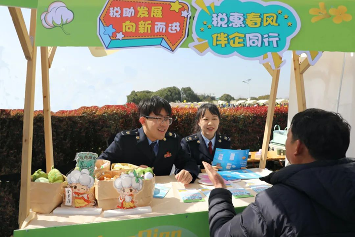 在羅店花神節活動現場,寶山區稅務局稅務幹部支起攤位為來往遊客發放宣傳資料,重點宣傳個人所得稅匯算清繳、代開房租發票等與其生活息息相關的稅費優惠政策,並就個人所得稅年度匯算等進行了詳細講解,耐心細緻做好每一項服務,將稅費優惠政策精準送達納稅人手中。