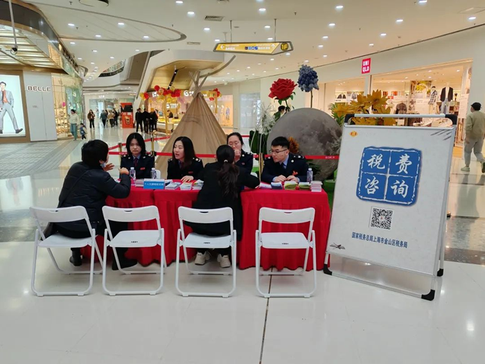 金山區稅務局走進萬達商圈搭設諮詢臺,嚮往來市民宣傳解讀個稅匯算等公眾關心的涉稅政策,讓各類稅惠紅利和創新舉措及時惠及廣大人民群眾。
