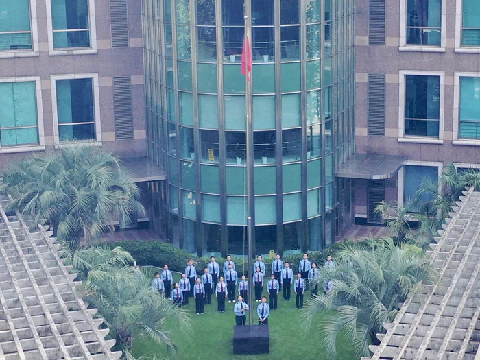 虹口區稅務局舉行升國旗儀式。稅務幹部們莊嚴肅立,面向國旗行注目禮,齊聲高唱國歌,共同祝願偉大的祖國繁榮昌盛,以更加奮發有為的精神狀態,在高品質推進中國式現代化上海稅務實踐中努力走在前、創一流。