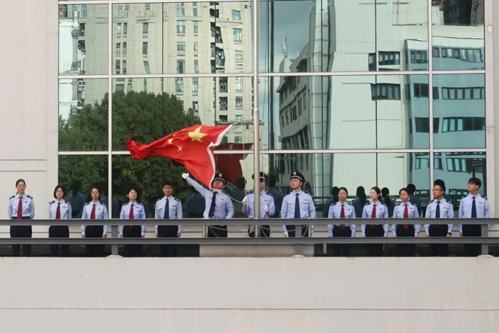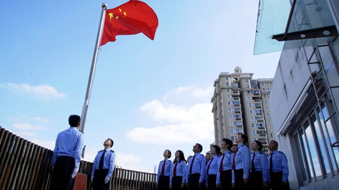 浦東新區稅務局舉行莊嚴的升國旗儀式,慶祝中華人民共和國成立76週年。稅務幹部們面向國旗,高唱國歌,以一如既往的勇毅與熱情,積極助力浦東新區打造社會主義現代化建設引領區,為區域高品質發展貢獻堅實的稅務力量。