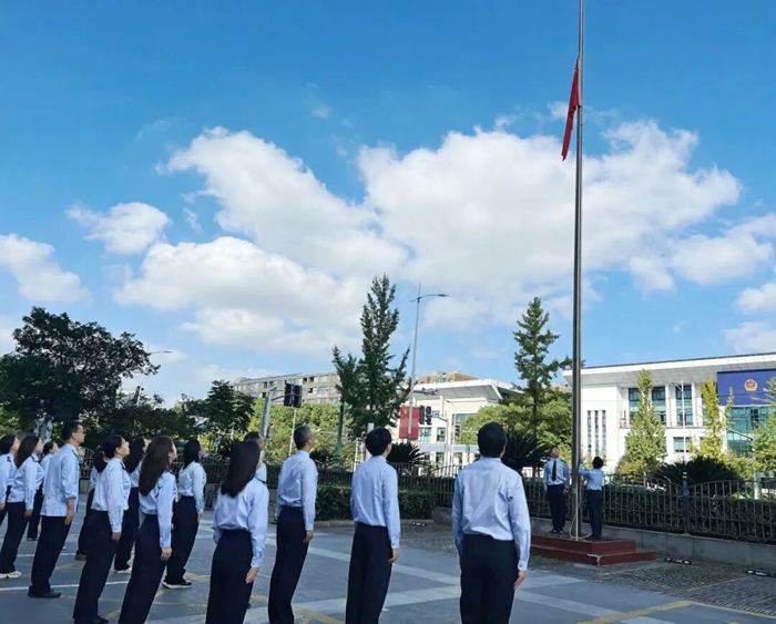 閔行區稅務局舉行升國旗儀式。伴隨著《義勇軍進行曲》的響起,鮮艷的五星紅旗冉冉升起。稅務幹部向國旗行注目禮,齊聲高唱國歌,表達對祖國的無限熱愛,並祝願祖國繁榮昌盛。全體稅務幹部將牢記使命、實幹爭先,在譜寫中國式現代化閔行稅務新實踐中挺膺擔當。