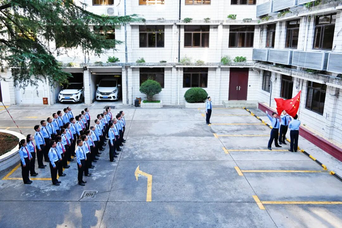 第三稽查局舉行莊嚴的升旗儀式。伴隨雄壯的《義勇軍進行曲》,五星紅旗冉冉升起。稅務幹部面向國旗行注目禮,向偉大祖國致以崇高的敬意和美好的祝福,並表示要擔當有為、真抓實幹,奮力續寫中國式現代化稅務實踐的新篇章。