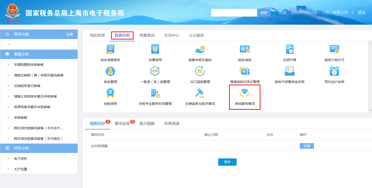 登錄電子稅務局,點擊首頁“我要辦稅”中的“其他服務事項”功能表,點擊“稅庫銀三方協議簽訂”進入辦理頁面。