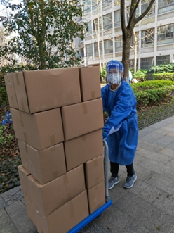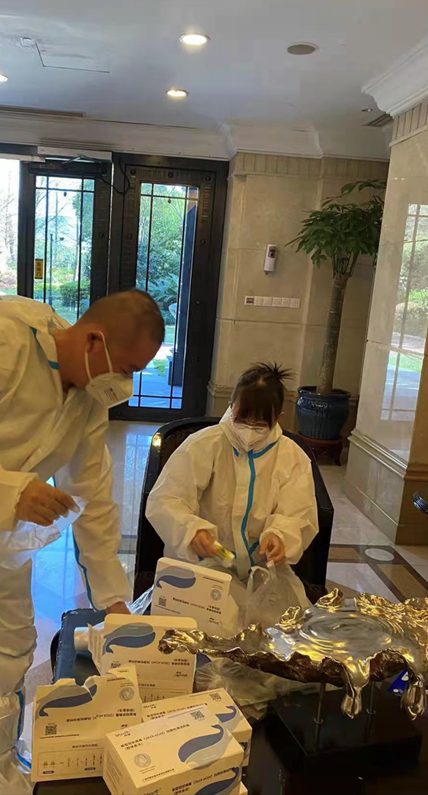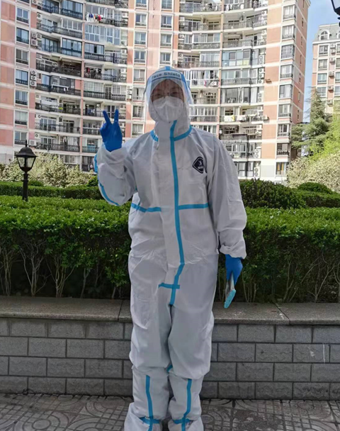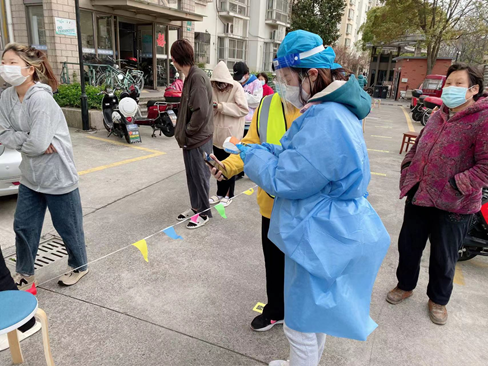 4月1日起,俞永瑋同志開啟了繁忙的志願服務工作,從分發政府物資、收集運送生活垃圾、分送快遞到配合核酸檢測工作、監督本樓棟居民足不出戶等一系列的工作,無論在哪都有她忙碌的身影。