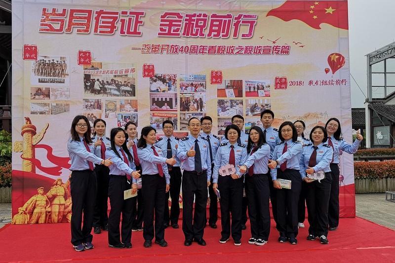 本次活动紧扣国家税务总局和市局制定的指导思想与宣传主题,以全国通办和环保税宣传为着眼点,开启绿色骑行之旅。20余位金税人满载税收宣传资料,从廊下镇特色民居家园起航,途经枫林渡、工业区、农贸市场、草莓研发基地、山塘民俗村,最终到达郊野公园,全程共计6.5公里。骑行过程中,每到一个站点,金税人就开展形式多样的税收宣传活动:到工业区内参观代表企业——上海香懋食品有限公司的生产工艺并进行现场纳税辅导和税收政策普及;在农贸市场分发通俗易懂的税务宣传资料,就市民朋友关心的问题进行专业解答;在草莓研发基地感受现代农业的魅力,以“绿色税收”助力农业“绿色发展”;在郊野公园的“岁月存证,金税前行”签名墙上留下印记,听税务前辈讲述过去的税收故事,传承他们的光荣与梦想。人得福以诚为本,国欲昌以税为根,改革开放的四十年更是税务发展的四十年,留言板上的一笔一划书写着金税人的风采画卷,农民画中的点点色彩彰显着金山人的腾飞梦想。