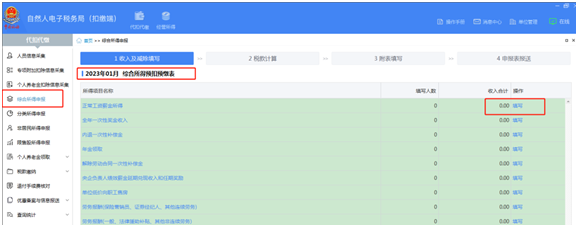 二、自然人电子税务局(扣缴端)中申报个税时,提示“上一属期未按照6万扣除减除费用”如何处理? ① 登录自然人电子税务局(扣缴端)-点击【首页】,将税款所属期改为当年1月份。 ② 依次点击【综合所得申报】-【正常工资薪金所得】-【收入和减除费用填写】页面-选择该员工,点击右上角【更多操作】-【减除费用扣除确认】-把【是】改为【否】,点击确认。 ③操作完成后,将首页的税款所属期改为当前申报月份,重新计算税款,发送申报即可。