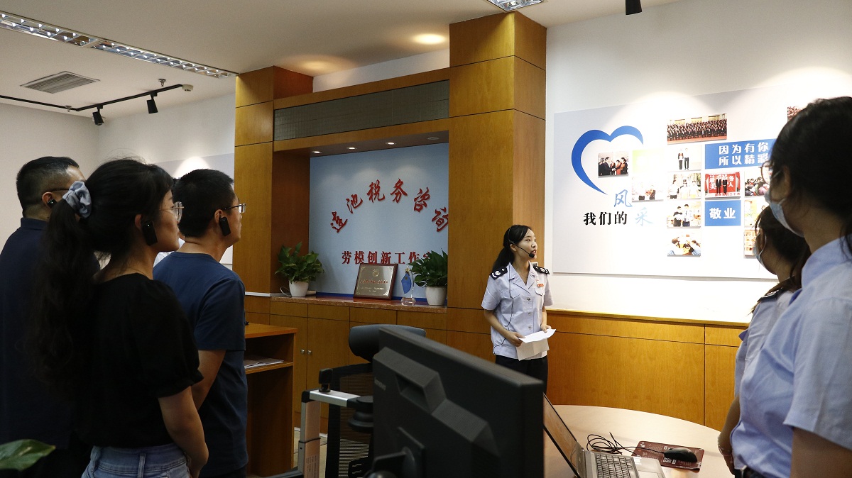 活动中,纳税人代表首先参观了连池劳模创新工作室,在现场,税务干部向代表们介绍工作室“双支柱”咨询专岗、双语化服务专窗等创新举措,感受税费服务精细化改革。随后参观了自助办税体验区、12366热线等办税缴费服务场所,实地体验基层税务干部日常工作,了解新升级版征纳互动相关功能、使用方式,并现场模拟使用升级版平台。在税企座谈交流环节,纳税人代表们对税务部门政策精准推送工作的运用给予充分肯定,并从日常办税体验、征纳互动、精准推送等方面对税务部门提出相关意见建议。面对纳税人代表提出的意见建议,来自市税务局办公室、纳税服务处和区税务局纳税服务处的税务干部一一回应记录。