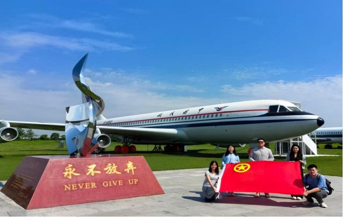 感受历史足迹,引领信仰航灯。青年们首先参观了运十广场,见证“永不言弃”雕塑的震撼与力量,在运十飞机的驾驶舱和客舱内聆听讲解员对运十光辉历程的生动介绍,亲身体验飞机内部构造和飞行感受。在参观过程中,大家被运十飞机先进的设计理念和精湛的工艺技术深深吸引。
