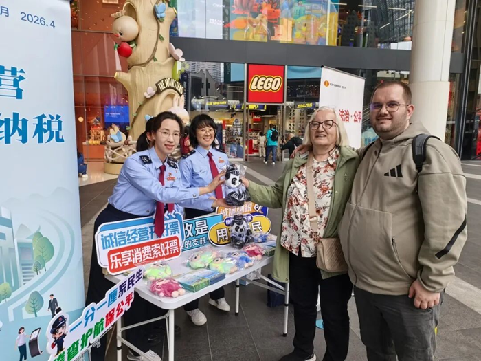 第一稽查局携手黄浦区税务局走进世贸广场,在泡泡玛特门店外设立流动税宣点,让税务“直通车”开进商圈,面向中外游客行人开展便民税法宣传。现场“零距离”讲解个税年度汇算、发票使用规范、离境退税等政策,一对一咨询指导,精准普及税法知识。