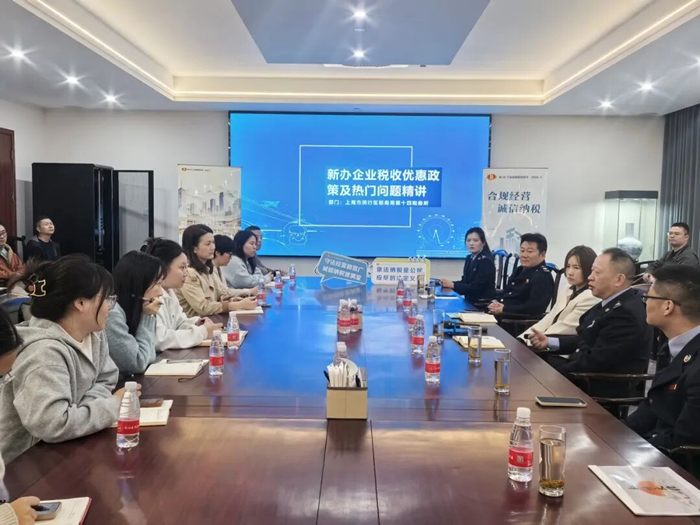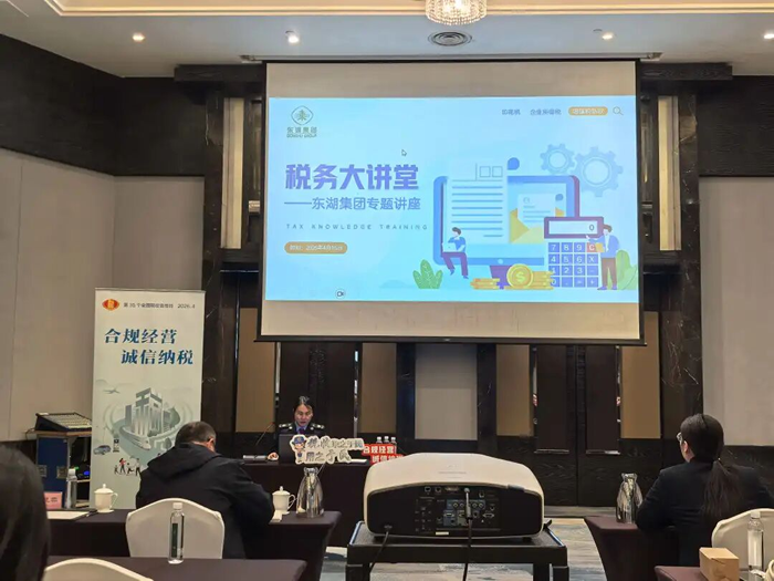 徐汇区税务局走进东湖集团,为旗下20余家企业60多位财务人员开展税务大讲堂,现场围绕企业所得税汇算清缴、印花税征纳提醒等多个政策要点,开展面对面精准辅导、点对点政策咨询,积极引导企业合规经营、诚信纳税。