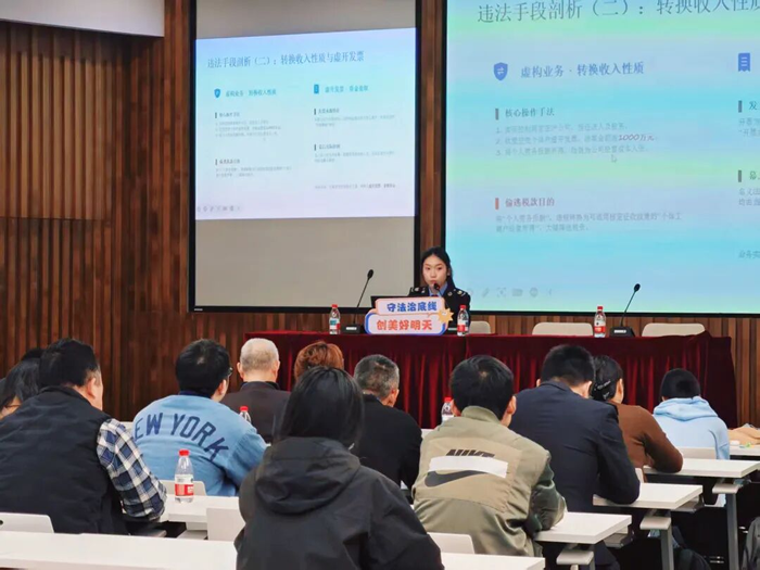 崇明区税务局联合第四稽查局面向30余户涉税中介机构和园区举行“合规经营 法治同行”税案释法宣讲活动。税务干部围绕涉税专业服务管理办法、涉税典型违法案例两大核心内容开展专题讲解,通过政策解读、以案释法帮助市场主体筑牢依法经营、诚信纳税的思想防线。