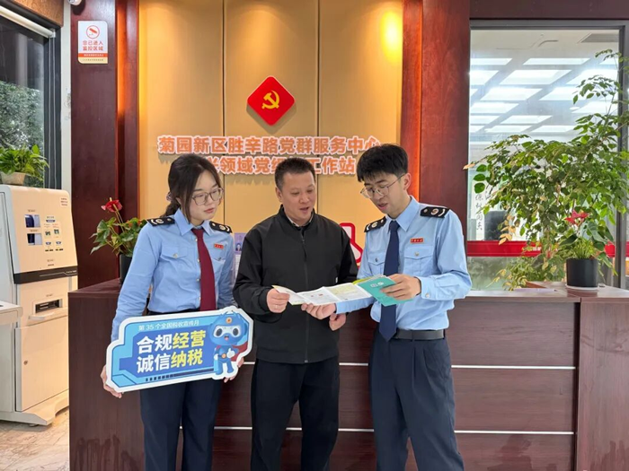 嘉定区税务局走进胜辛路党群服务中心开展税收宣传活动,面向社区及企业工作人员,解读热点税费政策、利企便民服务举措等,并提供一对一咨询辅导,依托党建共建纽带作用,让税收服务更接地气、更入人心,切实把政策红利送到群众和企业身边。