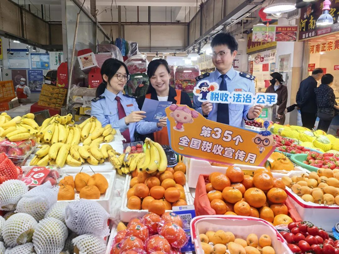 徐汇区税务局税务干部走进徐汇区罗秀菜市场,一对一、面对面认真倾听解决商户涉税难题,精心准备税收政策大礼包,为民生行业的稳健发展注入税务力量,营造依法纳税、协同共治的良好氛围。
