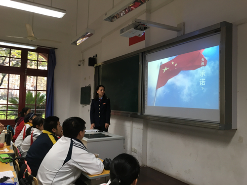 为贯彻落实党的十九大精神,维护宪法权威,进一步加深青少年对国家宪法的了解,培养学生遵守宪法的意识,徐汇区税务局于12月4日,即第5个国家宪法日,前往上海市第四中学与同学们联合开展“您好,宪法”主题班会活动。