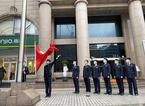虎年新春开工第一天,上海市徐汇区税务局举行庄严的升旗仪式,税务干部身着制服注视国旗缓缓上升。申城降温不减税务干部新年工作热情,他们表态将铆足干劲、振奋精神,在新时代新征程推进税收现代化事业展现新作为。