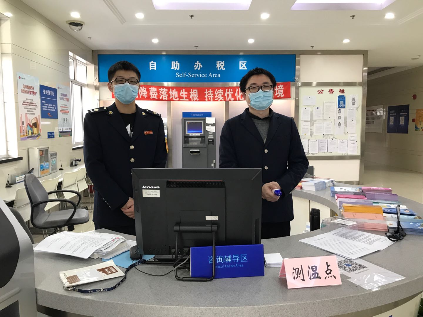 长宁区税务局统筹安排、抢早抓全,确保疫情防控期间纳税服务工作平稳有序。一是快速反应重效率,加强疫情期间办税服务厅运行保障和税收宣传。春节期间加班制定工作方案,于2月1日在全市最先发布《关于防范新型冠状病毒传播做好纳税服务工作的告纳税人书》,通过微信、短信、税企沟通平台等渠道滚动宣传网上办税事项,及时对外发布区局疫情防控相关要求及服务调整信息,大力推广非接触式办税。二是多措并举讲实效,精细谋划落实防护工作。根据区局应急预案要求,落实办税服务场所口罩等防护用具的配备工作,严密实行区域隔断,严格执行办税服务厅领导带班值班等制度,做好人群疏散和劝导工作,及时化解和处置各类风险隐患及突发情况。三是优化服务惠企民,分级分类满足办税需求。以纳税人和缴费人安全健康为出发点,积极引导网上办税,梳理网上业务操作指南,强化辅导工作;对于确需至现场办税的纳税人,倡导预约错峰办税,大力推进简事快办,同时针对特殊人群开通绿色通道,切实解决纳税人和缴费人急、难、愁,营造安全高效的办税缴费环境。