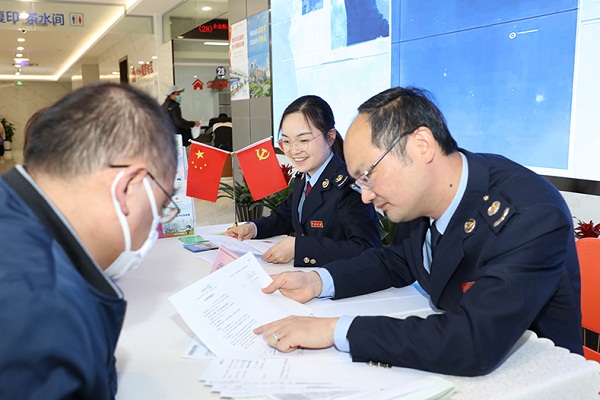 区局税务干部走进金山区自然资源确权登记事物中心,在办公现场设立办税缴费便民咨询直通车,一一解答纳税人缴费人密切关注的涉税问题,主要围绕个税、房产交易等热门话题,普及税法知识,宣传税费优惠政策,唱响惠民服务主旋律。