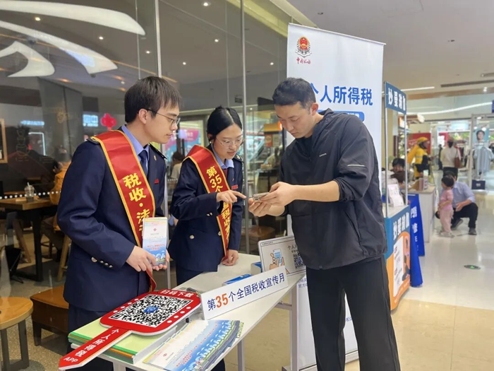 松江区税务局走进大橘印象荟,开展个人所得税专题宣传活动。现场设立咨询台,围绕专项附加扣除、个税年度汇算等热点,为商户和市民“一对一”答疑解惑,并手把手指导个税App操作。活动吸引众多群众参与,有效提升了税法知晓度。