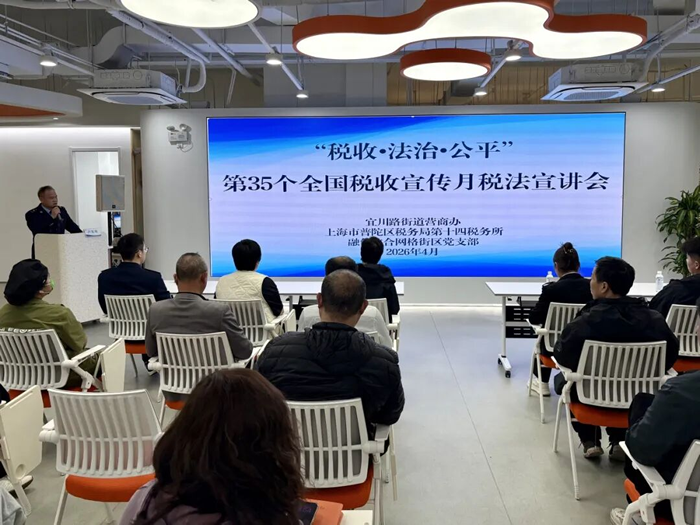 普陀区税务局走进宜川路街道营商办开展“新法赋能优营商 涉税风控筑防线”主题税宣活动,聚焦增值税法关于个体工商户和平台经营者相关涉税规范,面向不同征收方式的纳税人展开纳税辅导和风险提示,助力合规诚信经营,深耕细作优化营商环境。