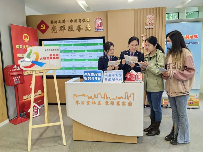 普陀区税务局在长征镇天地软件创业园举行“上海市税务系统新时代文明实践基地”挂牌仪式,搭建跨部门沟通、跨流程协商机制,有效解决园区及其周边企业纳税人“最后一公里”办税问题,持续为企业提供一站式、全天候、全方位的服务。