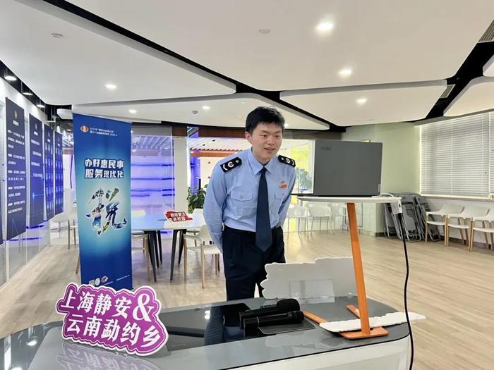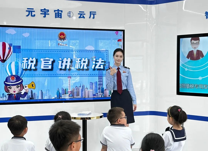 静安区税务局将线上宣传与智税体验紧密结合,在市北高新园区社会共治点内为云南勐约乡中心小学的孩子们带去趣味十足的税宣云端体验课堂。