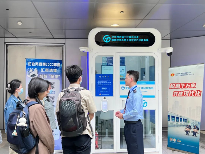 宝山区税务局在大场镇社会共治点开展“一站式”“专人式”主题税宣活动,邀请园区代表走进基地,现场体验发票自助柜取票流程,感受集多项纳税服务功能于一体的全新自助服务区,以优质的办税体验让纳税人更有获得感。