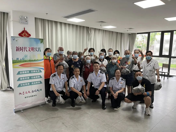 松江区税务局依托泗泾五金城社会共治点所在第十七税务所成立的“四叶草志愿服务队”,开展税收宣传、文明普法、创全卫生等志愿服务。端午期间,走进区非物质文化遗产保护项目——百年老店广利粽子,并将亲手包的粽子送到敬老院,关爱老人,倡导新风。