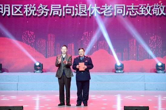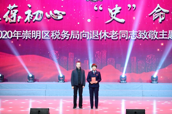 为深化“四史”学习教育、迎接建党百年大典、弘扬先进典型以及欢送退休干部,崇明区税务局于12月20日举办“永葆初心 ‘史’命传承”主题活动。此次主题活动从“信念如铁”“信仰如山”“信心如磐”三个篇章,重温崇税发展历程,致敬榜样力量,彰显新老交替、永葆初心、传承使命的崇税情怀。青年税务干部为退休人员准备了各式节目,94岁崇税人黄能先老同志现场讲述从一名抗美援朝战士到一名税务干部的初心与坚守,与会领导分别为44位2020年退休老同志、10位区局先进工作个人颁发荣誉证书,坚定对税务精神的传承。