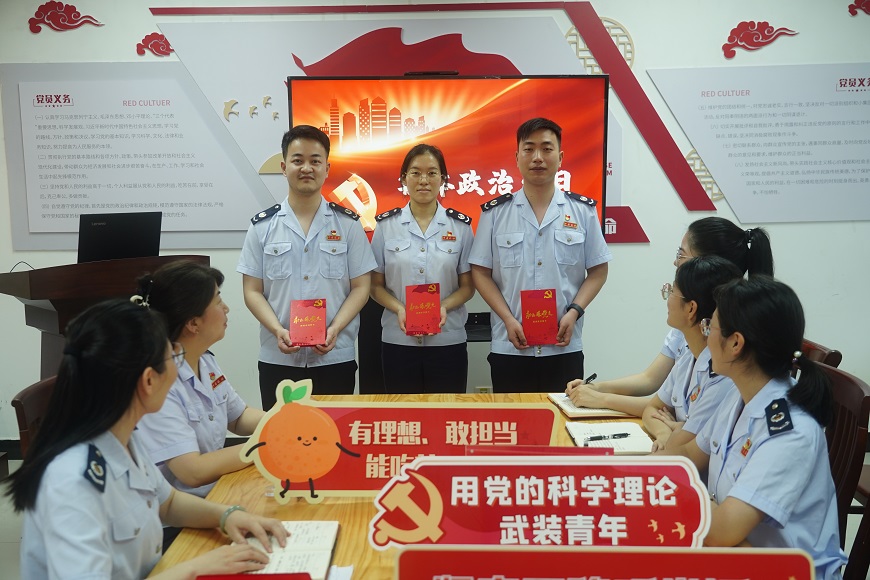 会议最后,党支部为上半年入党的党员同志过集体“政治生日”。党支部书记为3名党员颁发“政治生日”贺卡,一张张红色卡片上既有衷心祝福,也有殷切期望,希望党员们时刻牢记入党时的铮铮誓言,永葆党员先进本色,初心不改,笃行不怠。