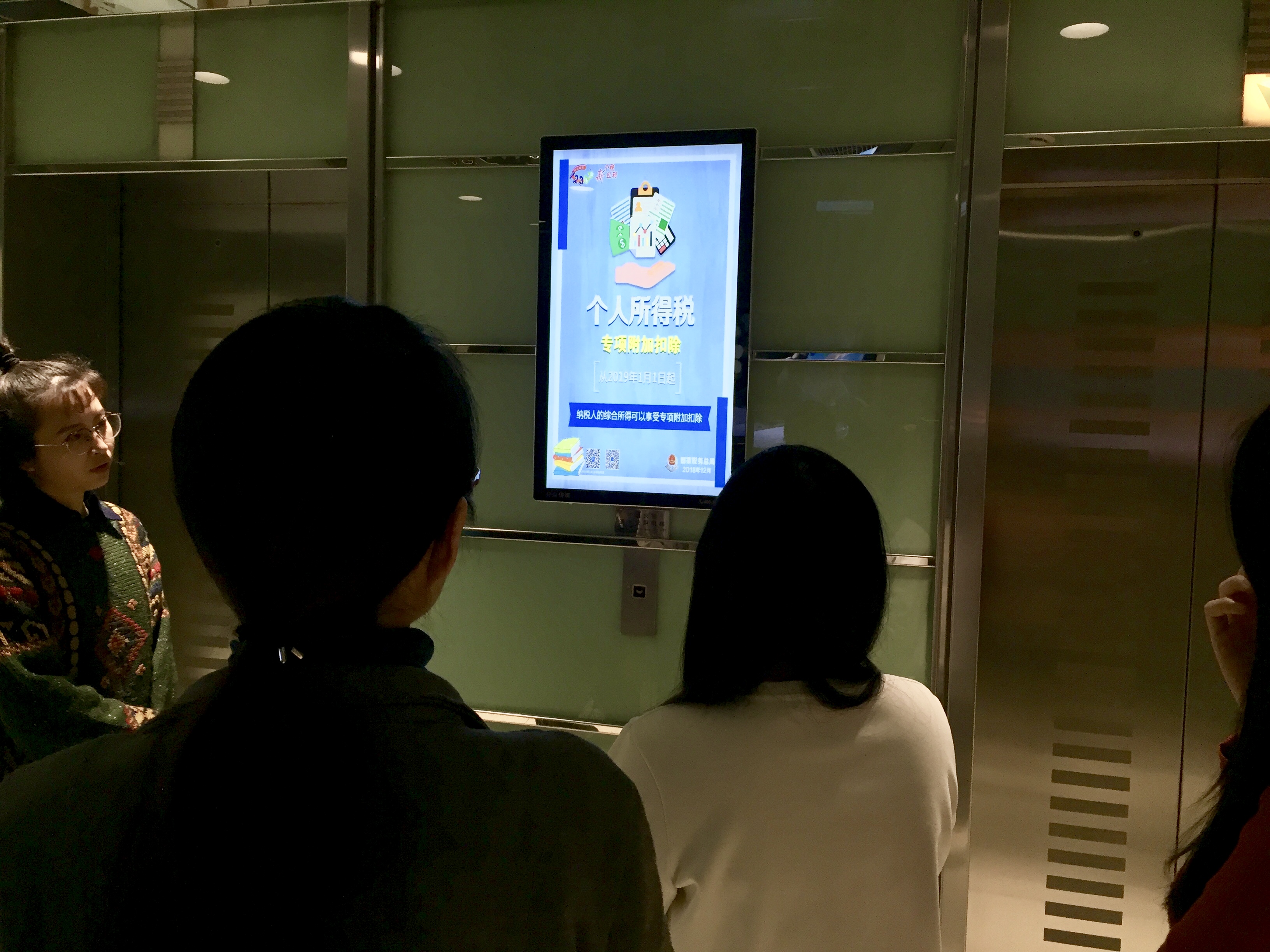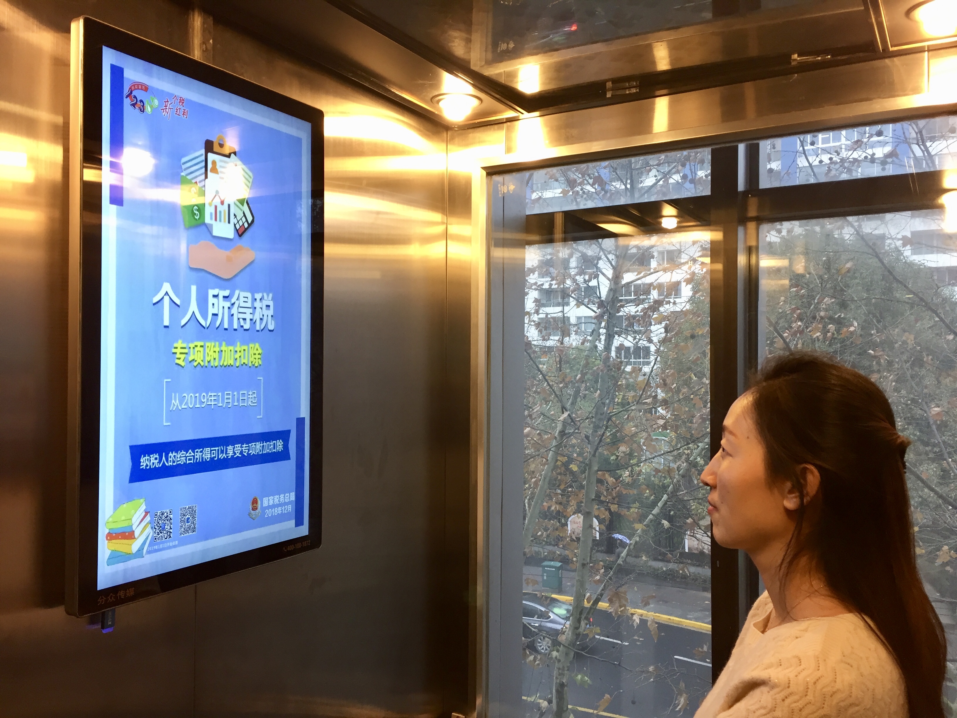 长宁区税务局借助分众传媒平台,先期在全市范围内5000块商务楼宇的智能屏点位播放个税改革宣传海报,利用受众群体乘坐电梯或楼宇间走动的碎片化时间吸引注意力,扩大宣传辐射面。下周开始,分众传媒将在商务楼宇内电视屏中滚动播放个税宣传视频,进一步增强吸引力和渗透力。