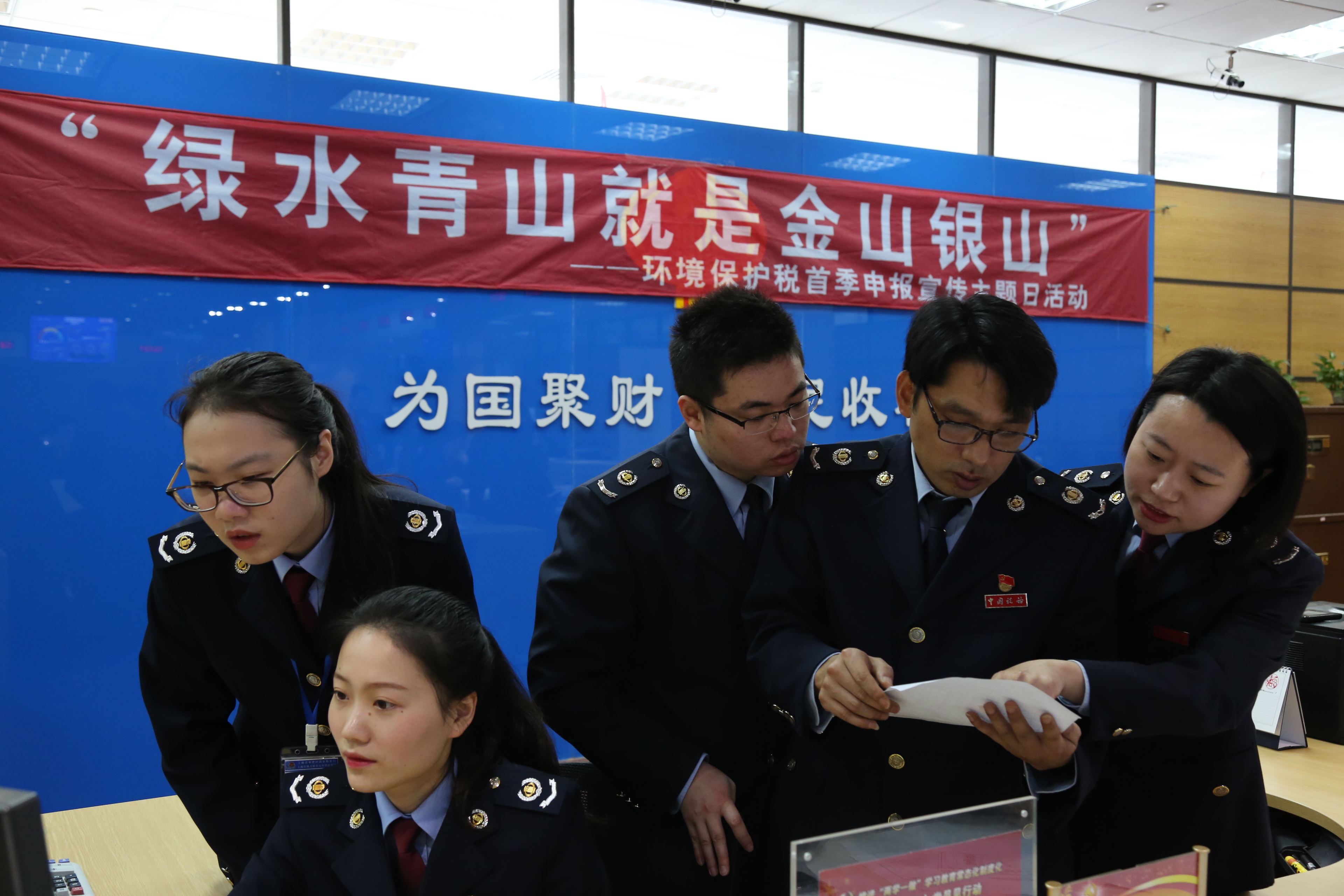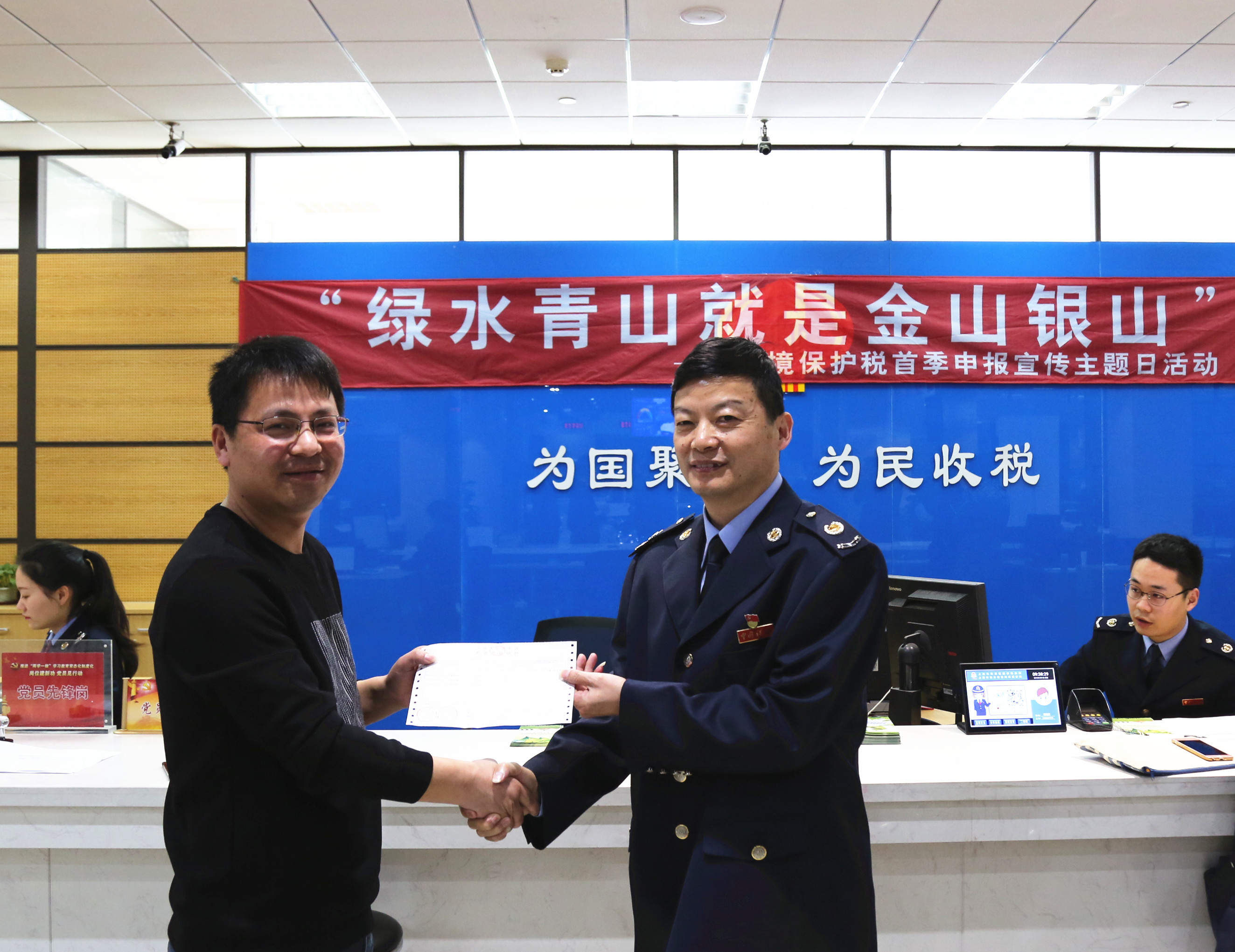 4月1日是全国第27个税收宣传月首日,同时也是环保税首个征期日。在这具有“双重”意义的日子里,市税务部门开展绿色税制改革宣传主题日活动,在全市17个办税服务厅开设环境保护税服务专窗。奉贤区税务局高度重视,精心筹备,科所联动,上午9点成功开出了本区第一张环境保护税税单。