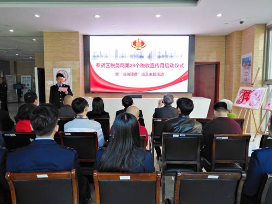 奉贤区税务局总会计师张卫兵表示,今年4月1日-5月20日期间,全国税务系统将以“落实减税降费,促进经济高质量发展”为主题开展第28个全国税收宣传月,这是史上时间跨度最长的一个税收宣传月。区局将坚决把宣传好减税降费政策措施作为努力目标,摆在重中之重的突出位置,增强责任意识和使命担当,确保企业和人民群众有实实在在的获得感。