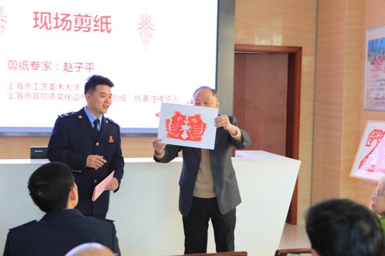 活动现场,上海市非物质文化遗产“海派剪纸”代表性传承人赵子平、奉贤区市级非物质文化遗产“奉贤刻纸”代表性传承人周宝才、奉贤区非物质文化遗产“南桥撕纸”新一代传承人何玉玮等民间传统纸艺人齐聚一堂。现场参加活动的还有奉贤区数十位企业代表和税务干部。奉贤区税务局将减税降费这一党中央、国务院作出的决策部署与中华传统纸艺相结合,形式新颖有趣,让在场纳税人眼前一亮。
