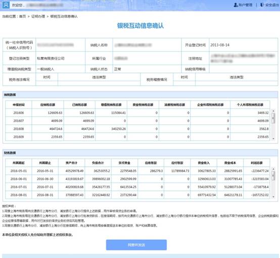 遵循國家稅務總局和中國銀行業監督管理委員會推出的“銀稅互動”活動要求,在國家稅務總局上海市稅務局與上海銀監局組織領導下,聯合在滬金融機構,在依法合規的基礎上,企業線上自主授權,銀行線上實時查詢,通過網際網路安全數據交互通道,以中小微企業的涉稅數據為依據,實現銀稅一體化服務。通過整合稅務與金融資源,實現納稅信用和金融信用互認,推動“網際網路+稅務+金融”創新,為誠信納稅人提供便捷、高效、安全的融資服務,有效緩解企業“融資難、融資貴”的難題,促進大眾創業、萬眾創新。