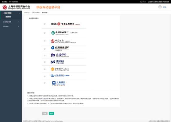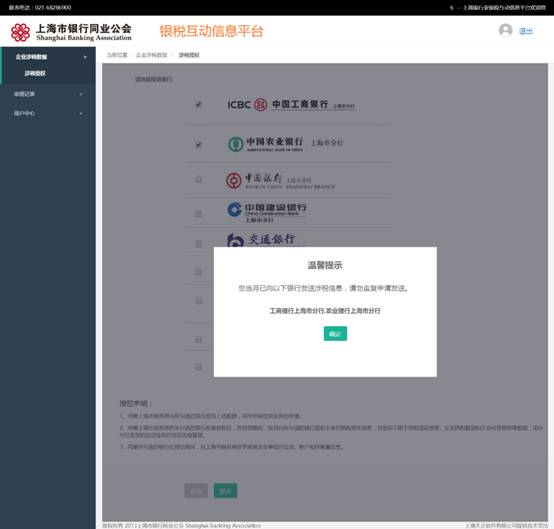 4.用戶根據系統提示返回上海市銀行同業公會銀稅互動資訊平臺。