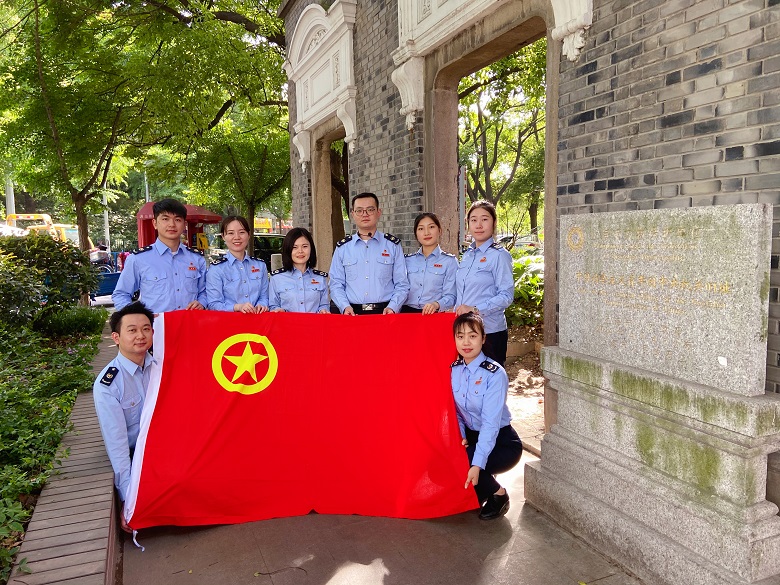 隨後,青年們繼續追尋紅色足跡,來到了位於大沽路400-402號的團中央舊址。在幾扇承載著百年曆史的石庫門下,區局青年學習標兵為大家展開了一場生動的微黨課,講述了在這條綠意蔥蘢的幽靜道路上,曾經發生的波瀾壯闊的故事。生動激昂的演講不僅讓青年們深受鼓舞,也不時吸引路過的群眾駐足聆聽、點頭讚賞。