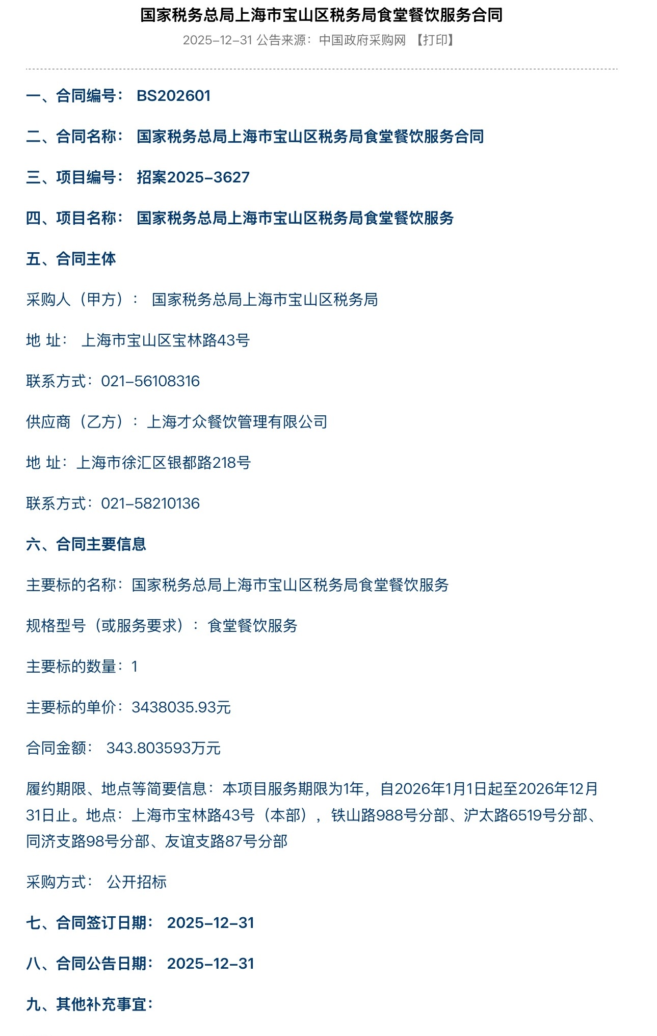 名稱: 國家稅務總局上海市寶山區稅務局食堂餐飲服務合同