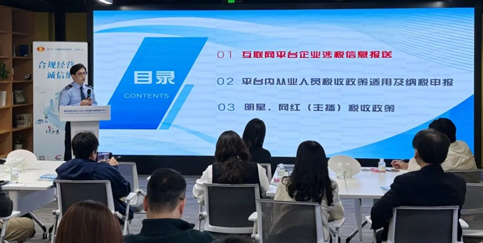 上海市稅務局第一稽查局走進小紅書,以"稅收·法治·公平"為主題開展稅宣活動。稅務幹部結合網際網路平臺經濟新業態特點,聚焦平臺與MCN 機構、網紅博主經營合作中常見的涉稅問題進行精準政策輔導與案例解讀。同時,圍繞企業關心的研發費用加計扣除、個稅年度匯算、平臺經濟相關稅收政策等熱點問題給予詳細解答。