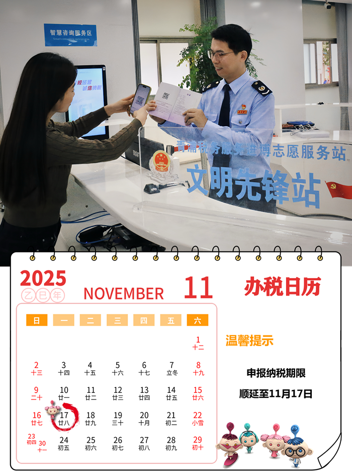 本月申報期截至11月17日(週一),申稅小微溫馨提醒:為了讓您有更好的申報體驗,請合理安排時間,儘量避開申報高峰期,謝謝!